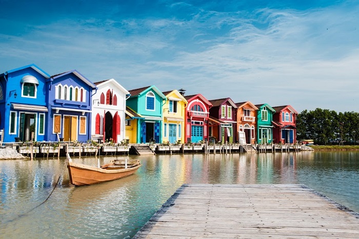 Những dãy nhà nhiều sắc màu là điểm nhấn nổi bật cho phim trường
