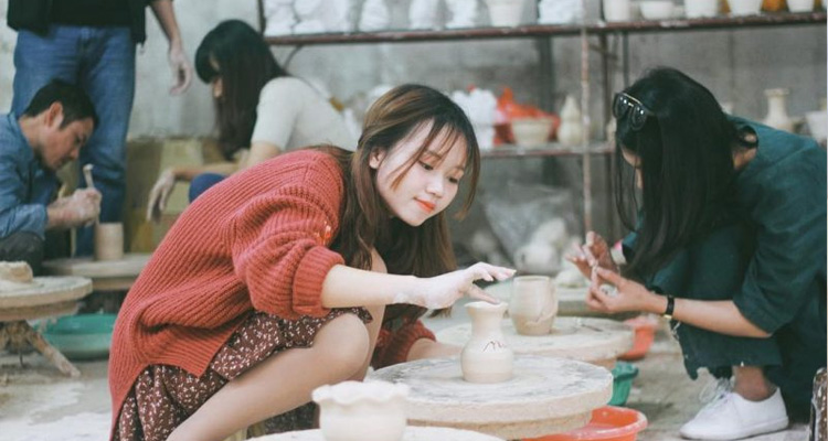 Còn nếu muốn trải nghiệm sâu hơn, bạn hãy hóa thân thành một nghệ nhân làng gốm để thử nặn gốm. Dù bạn có vụng về đến đâu cũng sẽ bất giác chậm lại để tỉ mẩn với tác phẩm của chính mình, đồng thời đây cũng là bối cảnh để bạn có những bức ảnh so deep không đụng hàng.