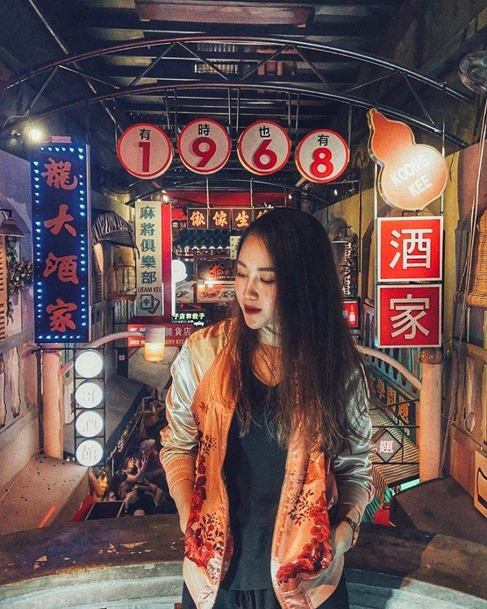 Vị trí chụp ảnh mà được nhiều người ưa chuộng nhất chính là chiếc lan can hướng ra phía cửa vào. Với phần phía sau lưng được decor hoàn toàn giống hệt một khu phố cổ tại Hong Kong những thập niên 60, 70 của thế kỷ trước vô cùng tỉ mỉ và deep miễn bàn!