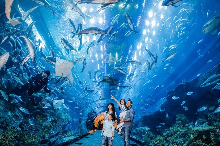 Thủy cung có diện tích vô cùng lớn, với hơn 3 triệu khối nước biển và hơn 30.000 loài sinh vật biển từ khắp nơi trên thế giới. đến đây các bé sẽ thỏa sức khám phá các sinh vật và sự sống dưới đáy đại dương như: chim cánh cụt, cua, nhện, cá…