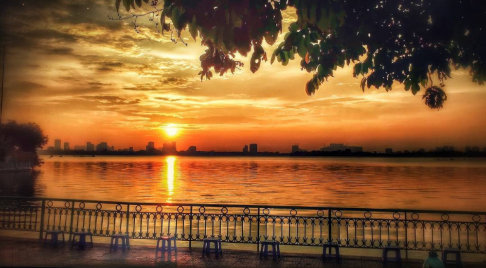 Vào buổi chiều thu, khi mặt trời lặn, mặt trời đỏ rực sẽ in bóng lên mặt hồ rộng lớn, phản chiếu cả bầu trời hoàng hôn. Đây là một khung cảnh tuyệt đẹp vào mùa thu Hà Nội mà chỉ có thể tìm thấy ở Hồ Tây.