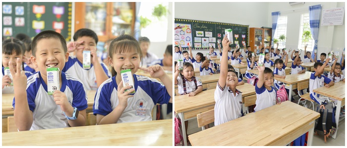 Việc uống sữa mỗi ngày khi đến lớp góp phần giúp các em có thêm năng lượng để học tập, tham gia vào các hoạt động, góp phần phát triển thể trạng một cách toàn diện.