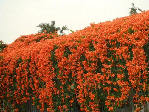 Loại hoa này bám theo giàn thiết kế sẵn sẽ khiến không gian trở nên đẹp lộng lẫy lại có thể chơi lâu năm. Hoa leo chùm ớt dễ chăm sóc và chịu nắng hạn cực tốt nên là một trong những cây phát triển tốt vào mùa hè.