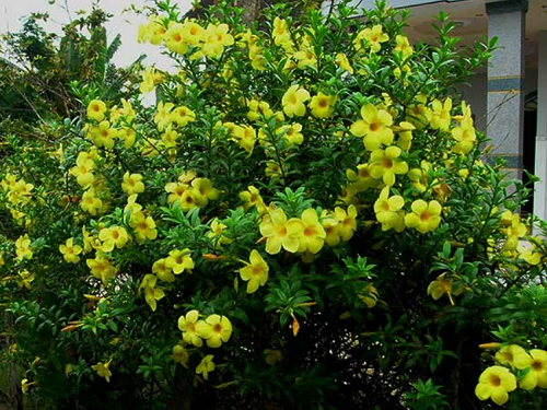 Hoa huỳnh anh không chỉ làm đẹp cho giàn leo hay vòm cổng, mà còn có tác dụng che nắng, tạo bầu không khí mát mẻ hơn. Khi trồng dây huỳnh anh trên hàng rào hay ban công, những nhánh thả xuống có thể tạo ra một bức tường xanh tươi với những bông hoa màu vàng rực rỡ.
