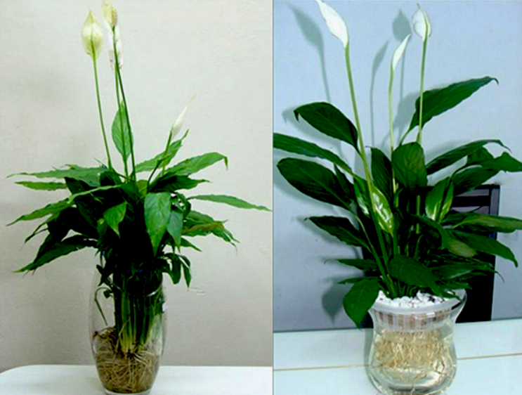 Khi trồng lan ý bạn có thể chuẩn bị một thùng thủy tinh sạch, sau khi tưới nước thì cho thêm một ít đá cuội hoặc xi măng vào thùng. Điều này có tác dụng cố định bộ rễ của cọ trắng, mỗi tháng thay nước một lần.