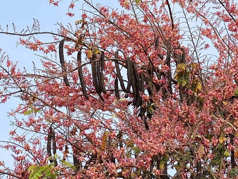 Bông ô môi gắn với tuổi học trò, nở rộ vào thời điểm cuối tháng 4 và kéo dài trong vòng một tháng. Những bông hoa màu hồng nở thắm một góc trời, bên bờ kênh, gợi nhớ tình yêu tuổi học trò. Bông ô môi kết thành chùm dài, xếp lưa thưa và rũ xuống. Vào mùa bông nở, lá thưa, nên có thể nhận thấy cây từ xa một màu đồng nhất.