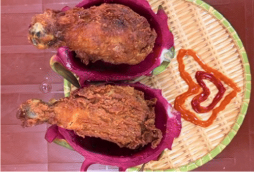 Để làm món gà chiên thanh long này, thật ra, bạn chỉ cần trộn bột chiên giòn với nước ép thanh long thay vì trộn với nước lọc. Sau đó, lăn thịt gà đã rửa sạch vào hỗn hợp nước ép thanh long trộn bột chiên giòn, và lăn qua thêm 1 lớp bột chiên giòn (không trộn nước) nữa rồi thả vào dầu sôi là xong. Về cơ bản, thao tác làm gà chiên thanh long cũng không có nhiều thay đổi so với công thức làm gà chiên thông thường.