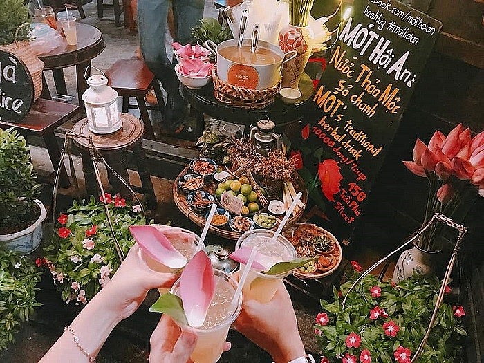Trà thảo mộc mót Hội An không còn xa lạ với nhiều du khách khi đến với phố cổ. Nếu bạn băn khoăn nước mót làm từ gì thì đây là một loại “trà chanh sả” được làm từ những nguyên liệu thảo mộc nổi tiếng hoàn toàn từ thiên nhiên, điển hình như: hoa cúc, lá trà xanh, quế, hạ khô thảo, la hán quả, cam thảo, kim ngân, chanh, sả, đường, mật ong, quế,… Hương vị và mùi thơm của những nguyên liệu này kết hợp, tạo nên một dư vị ngọt thanh, tươi mát, làm “say lòng” thực khách khi thưởng thức.