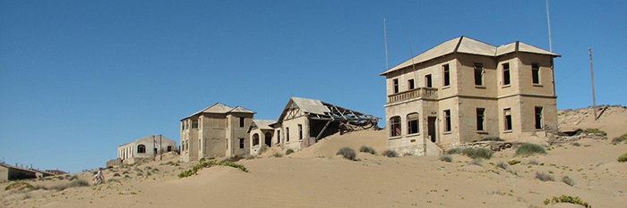 Thị trấn Kolmanskop ở miền nam Namibia sống động nhất từ đầu những năm 1900 khi thợ mỏ Đức đổ tới đây tìm kim cương, nhưng bắt đầu suy tàn sau Thế chiến 1 và bị sa mạc “ăn mòn” kể từ đó.