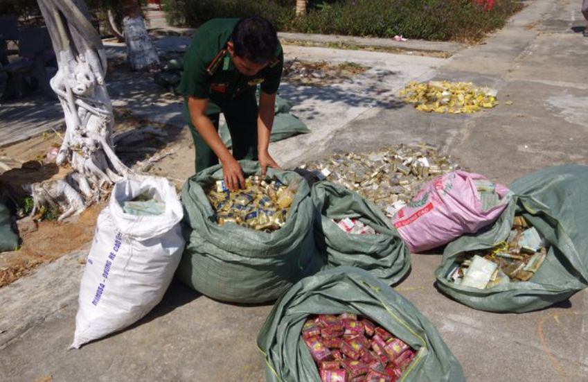 Lực lượng chức năng tỉnh Ninh Thuận vừa phát hiện, thu gom và tạm giữ 19.361 bao thuốc lá điếu do nước ngoài sản xuất trôi dạt vào bờ biển Sơn Hải (huyện Thuận Nam, tỉnh Ninh Thuận).