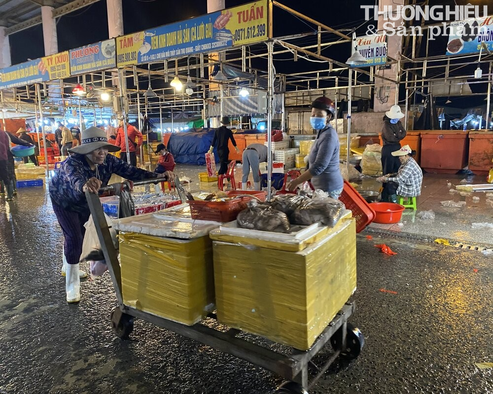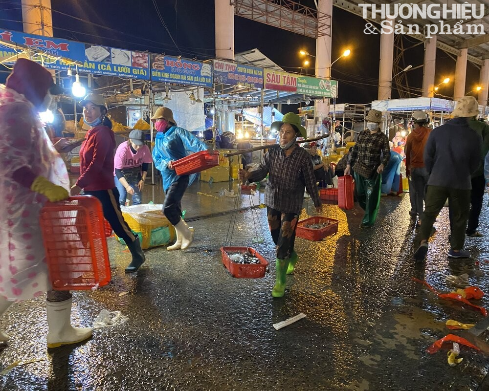 Có mặt tại cảng cá Thọ Quang (phường Thọ Quang, quận Sơn Trà, Đà Nẵng) lúc 3 giờ sáng, đập vào mắt tôi là hình ảnh những người đàn ông, phụ nữ đang gánh cá thuê nặng trĩu trên đôi vai, sải bước đi với vận tốc nhanh để kịp đơn hàng tiếp theo.