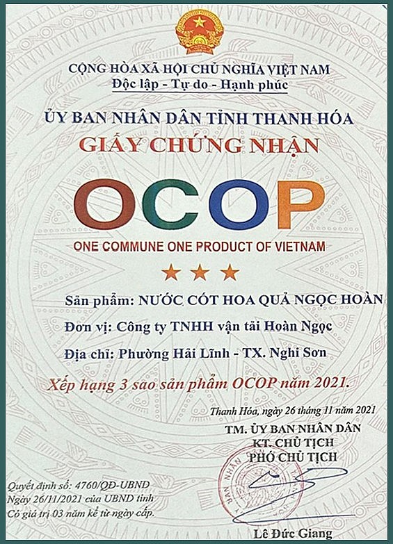 Với việc kiên trì nghiên cứu chế biến để đưa sản phẩm nước cốt hoa quả Ngọc Hoàn đến với người tiêu dùng và nỗ lực xây dựng thương hiệu, đến nay đã trở thành một trong những sản phẩm nông nghiệp tiêu biểu của thị xã Nghi Sơn nói riêng và tỉnh Thanh Hoá nói chung, được tỉnh công nhận sản phẩm OCOP đạt chuẩn 3 sao.