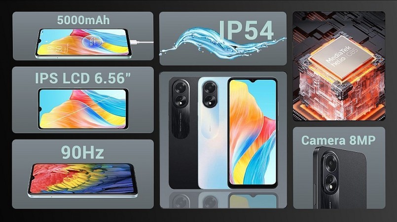 Oppo A18 có thiết kế tương tự Oppo A38, đây là dòng điện thoại giá rẻ bắt đầu trình làng từ 1/11 với vi xử lý Helio G85.
