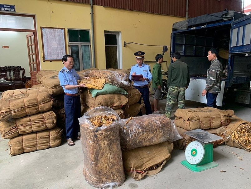 Tại thời điểm kiểm tra lực lượng chức năng liên ngành phát hiện toàn bộ hàng hoá trên các xe ô tô tải trên có số lượng 14,5 tấn (14.500kg) lá thuốc lá đã sấy khô, có giá trị ước tính khoảng 800 triệu đồng.