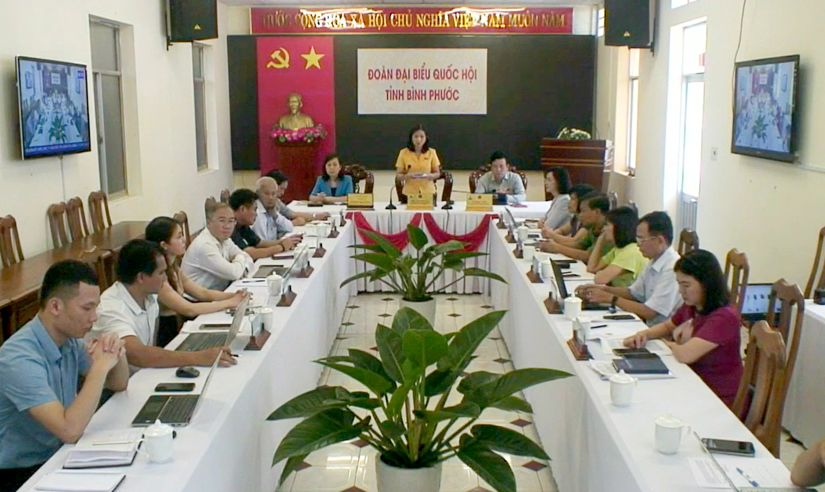 Dự Phiên chất vấn tại các điểm cầu có các đồng chí Trưởng đoàn, Phó Trưởng Đoàn đại biểu Quốc hội, các vị đại biểu Quốc hội công tác tại địa phương, các đồng chí Chủ tịch, Phó Chủ tịch Hội đồng nhân dân, Ủy ban nhân dân, UBMTTQVN tỉnh, thành phố, các sở, ngành có liên quan ở địa phương.