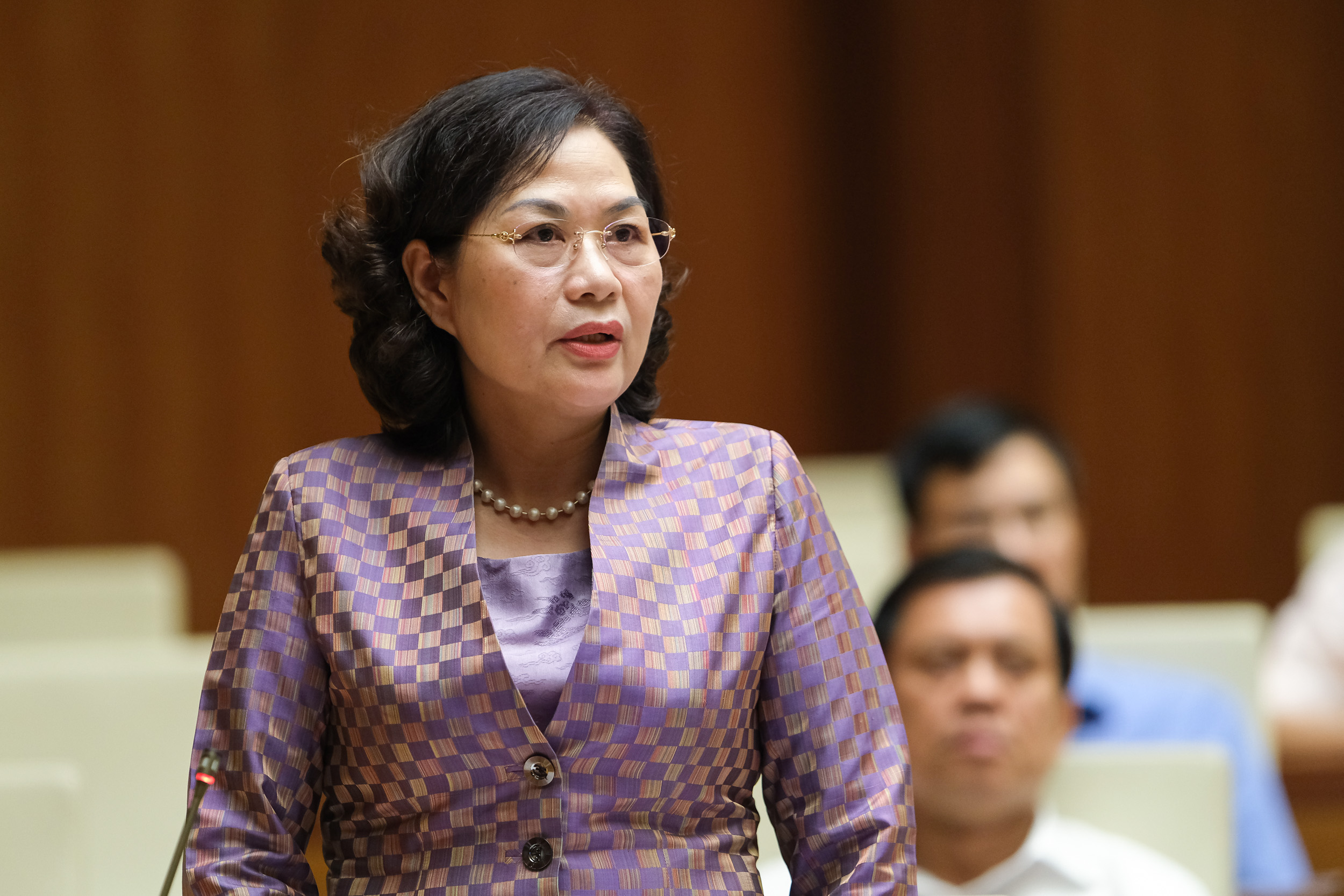 Liên quan đến vấn đề này, đại biểu Nguyễn Thị Yến Nhi gửi câu hỏi tới Thống đốc Ngân hàng Nhà nước Việt Nam đó là hiện nay có thực trạng khi người dân vay ở các ngân hàng, đến kỳ đáo hạn thì phải đi vay nóng ở bên ngoài với lãi suất cao để trả vào trong ngân hàng để làm thủ tục vay lại. Đại biểu băn khoăn Thống đốc có biết tình trạng này đang diễn ra rất phổ biến ngoài xã hội hay không và có giải pháp gì để khắc phục trong thời gian tới?