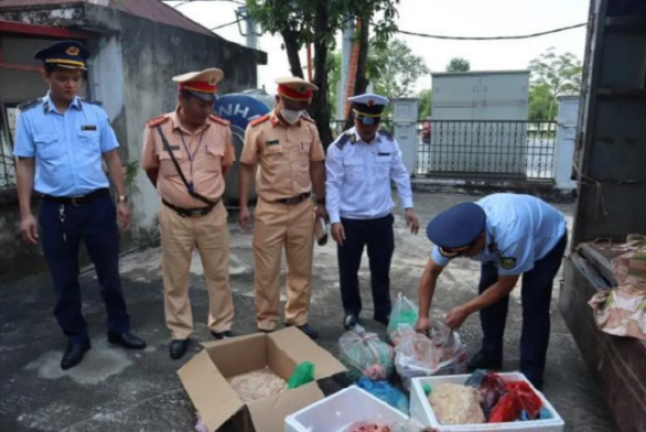 Tại thời điểm kiểm tra, lực lượng chức năng phát hiện trên xe đang vận chuyển số hàng hóa gồm nội tạng động vật lợn (lòng, gan, dạ dày…) được đựng trong 02 thùng xốp màu trắng có tổng trọng lượng 91 kg đã bốc mùi hôi thối và biến đổi về màu sắc, đang trên đường đi tiêu thụ.
