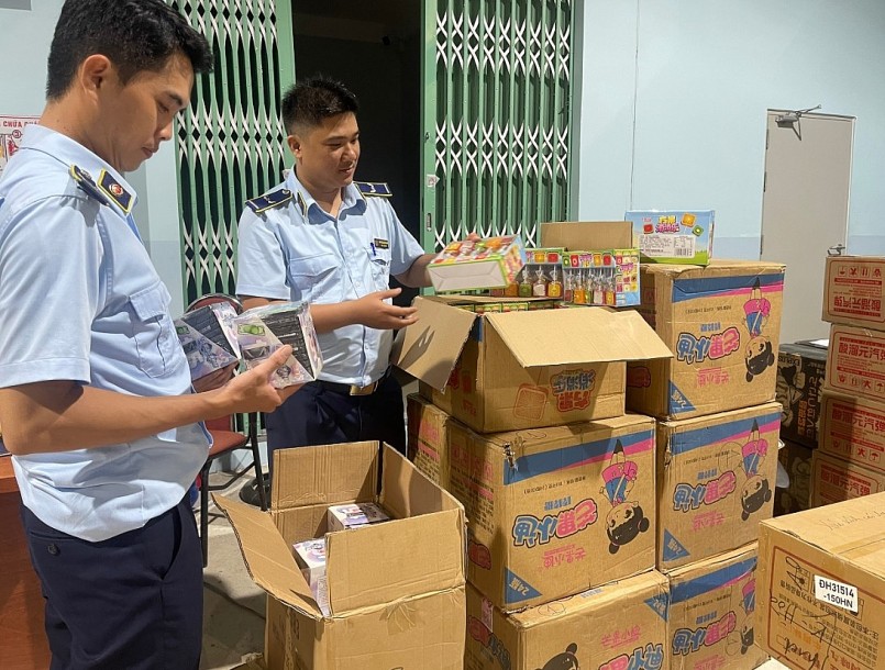 Kết quả kiểm tra phát hiện trên xe vận chuyển 21 mục hàng trong đó có: Xúc xích các loại nhãn bằng tiếng nước ngoài, số lượng: 1.600 bì; Thanh cua các loại nhãn bằng tiếng nước ngoài, số lượng: 3.600 bì; Kẹo các loại, các hiệu TANGXIADUO, SUAN LIU YUAN QI DAN, Deer DaDa, YiMuBai, Ringpop, LOLLIPOP, nhãn bằng tiếng nước ngoài, số lượng: 5.490 hộp; Kẹo các loại, các hiệu DROPS CANDY MIX, Sour Ghost Sugar, TYUNHUAJIAN, YaYou, BAIJIA CANDY, WEILIYA, nhãn bằng tiếng nước ngoài, số lượng: 25.480 bì; Kẹo các loại, các hiệu LOTTERY MACHINE, Mini phone Candy, nhãn bằng tiếng nước ngoài, số lượng: 1.248 cái; Bánh que socola hiệu DOYEN, nhãn bằng tiếng nước ngoài, số lượng: 1.200 bì. Tại thời điểm kiểm tra, lái xe không xuất trình được hóa đơn, chứng từ hợp pháp kèm theo.