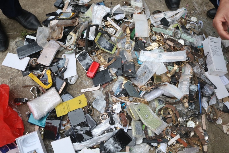 | Tiến hành đập vỡ các sản phẩm đồng hồ, điện thoại |