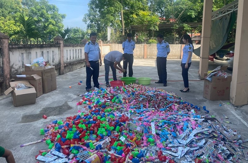 Trong số tang vật tiêu hủy, có 200 bao thuốc lá điếu hiệu Canyon, xuất xứ từ Singapore nhập lậu; 147 đơn vị sản phẩm quần, áo, giày, dép xuất xứ nước ngoài nhập lậu giả mạo các nhãn hiệu nổi tiếng đang được bảo hộ tại Việt Nam và 7.211 sản phẩm bánh, kẹo, thạch trái cây các loại do nước ngoài sản xuất, không bảo đảm an toàn sử dụng.