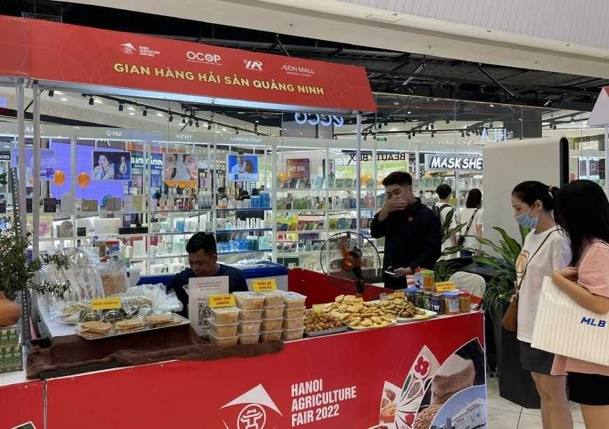 Gian hàng hải sản Quảng Ninh tại Hội chợ xúc tiến thương mại nông nghiệp, sản phẩm OCOP Hà Nội 2022. |
