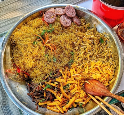 Thịt bò tẩm ướp đậm đà đem xào với hành phi tới lửa làm dậy mùi hương quyến rũ. Nước trộn chua thanh ngọt dịu. Trứng luộc chín tới đem thái khoanh. Khi ăn bạn chỉ cần xếp rau ra đĩa, thêm chút thịt bò, rải vài lát trứng rồi tưới nước trộn lên vậy là bạn đã có thể thưởng thức món ngon bổ dưỡng, lạ miệng này rồi.