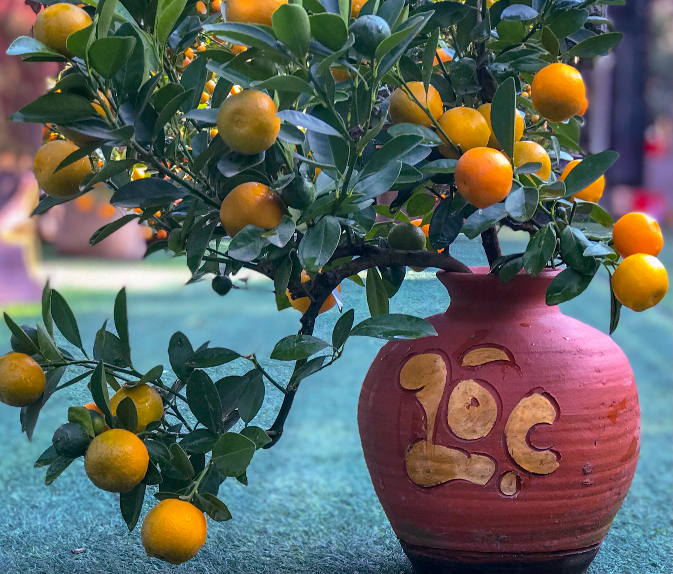 Những chậu quất bon sai nhỏ xinh xắn để trong bình cũng được nhiều người lựa chọn.