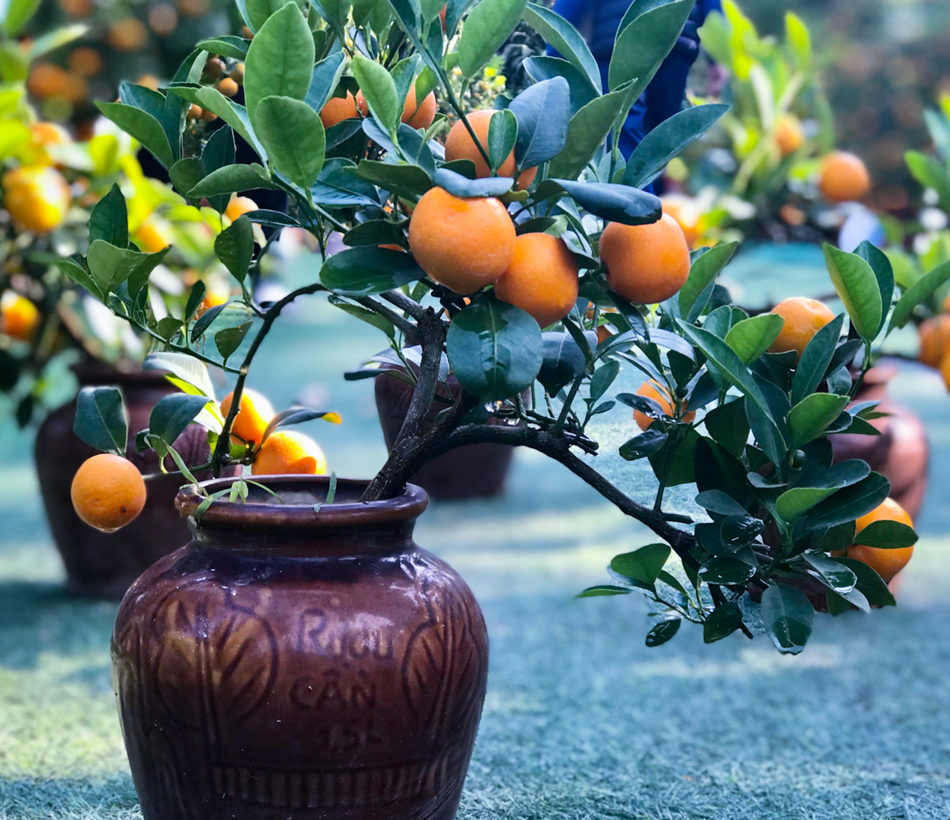 Được biết, thời gian để tạo ra những cây quất bon sai còn tùy thuộc vào từng dáng khác nhau. Những cây quất bonsai được trồng trong các bình khá xinh xắn.