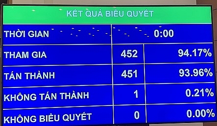 Với 451/452 đại biểu Quốc hội biểu quyết thông qua, Quốc hội đã miễn nhiệm Phó Chủ tịch nước đối với bà Đặng Thị Ngọc Thịnh.