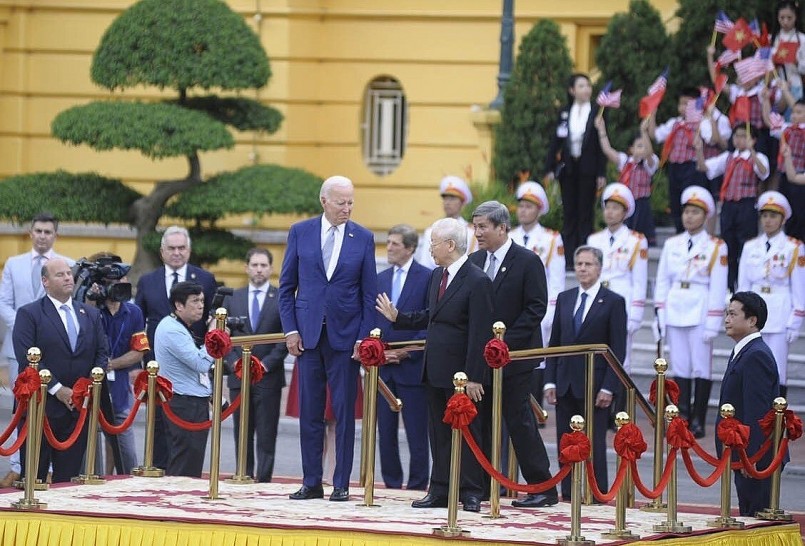 Tổng Bí thư Nguyễn Phú Trọng chủ trì lễ đón Tổng thống Joe Biden hồi tháng 9/2023.