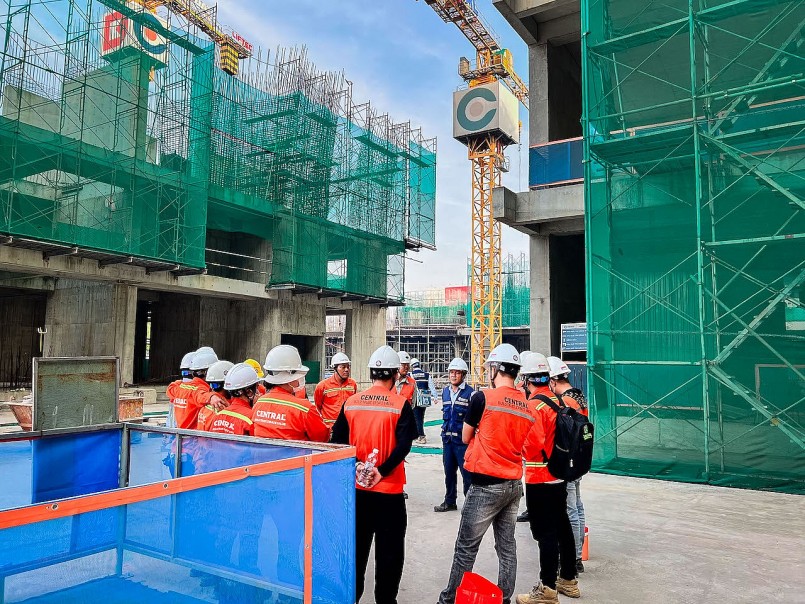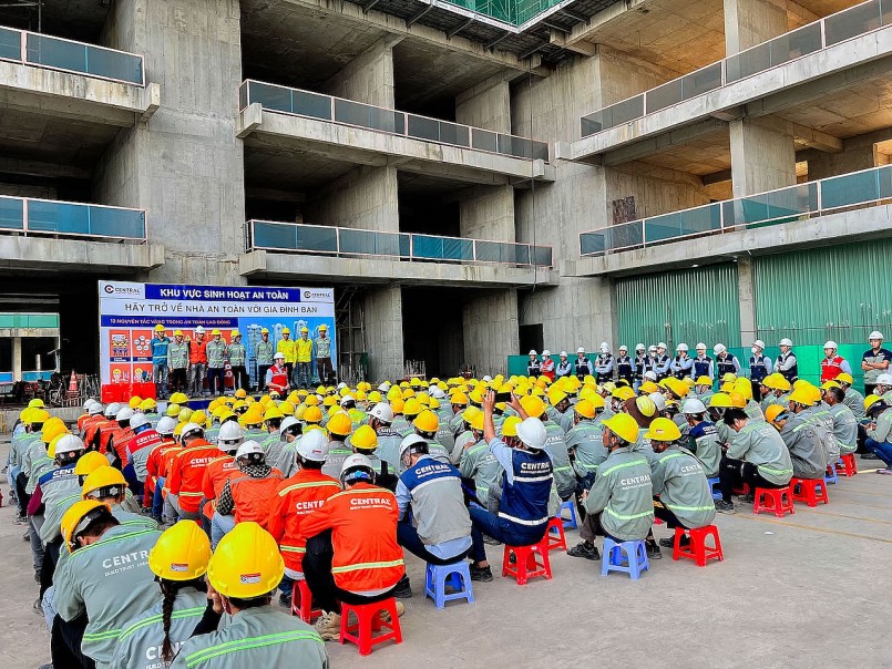Để sớm ngày đưa “Thành phố của những vì sao” về đích, nhà thầu Central đã huy động số lượng lớn máy móc, trang thiết bị tiên tiến nhất và hàng trăm công nhân thay ca làm việc liên tục cả ngày lẫn đêm.