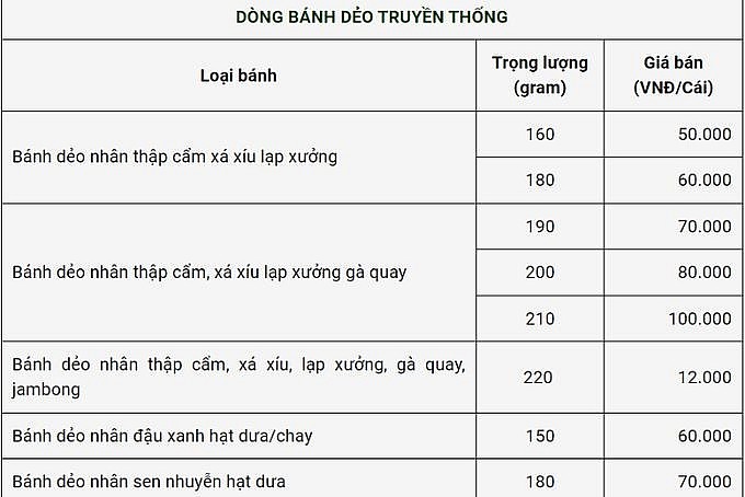 Bảng giá bánh trung thu Đông Phương năm 2023 với dòng bánh dẻo truyền thống