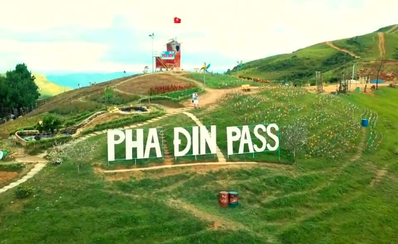 Khu du lịch Pha Đin Pass sở hữu những vườn hoa vô cùng xinh đẹp, chủ yếu có hoa tam giác mạch, hoa cải trắng, hoa cúc vàng… đảm bảo có thể gây ấn tượng ngay từ lần đầu tiên với bất cứ du khách nào. Từ trên đỉnh đèo, du khách có thể phóng tầm mắt ra xa và tha hồ ngắm nhìn thung lũng Mường Quải đẹp như tranh. Ngoài ra, du khách còn có thể chụp hình với ngọn đồi chong chóng, cầu tre chong chóng hay chiếc xích đu đầy lãng mạn.