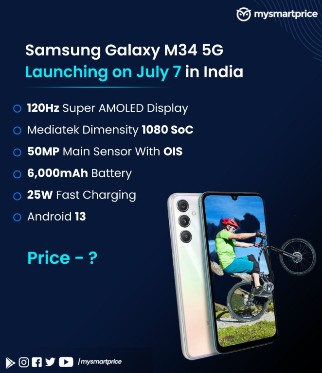 Samsung Galaxy M34 5G sở hữu cấu hình khủng sẽ ra mắt tại thị trường Ấn Độ vào ngày 7/7.