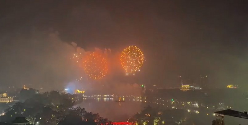 | Hình ảnh pháo hoa trên bầu trời đêm Hà Nội, pháo được bắn trong 15 phút. |