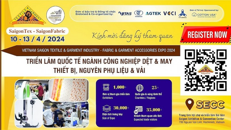 Triển lãm quốc tế ngành công nghiệp dệt, may, thiết bị, nguyên phụ liệu và vải năm 2024 (SaigonTex & SaigonFabric 2024) là cơ hội cho các doanh nghiệp trong và ngoài nước gặp gỡ hợp tác, quảng bá thương hiệu, tìm kiếm đối tác và mở rộng thị trường.