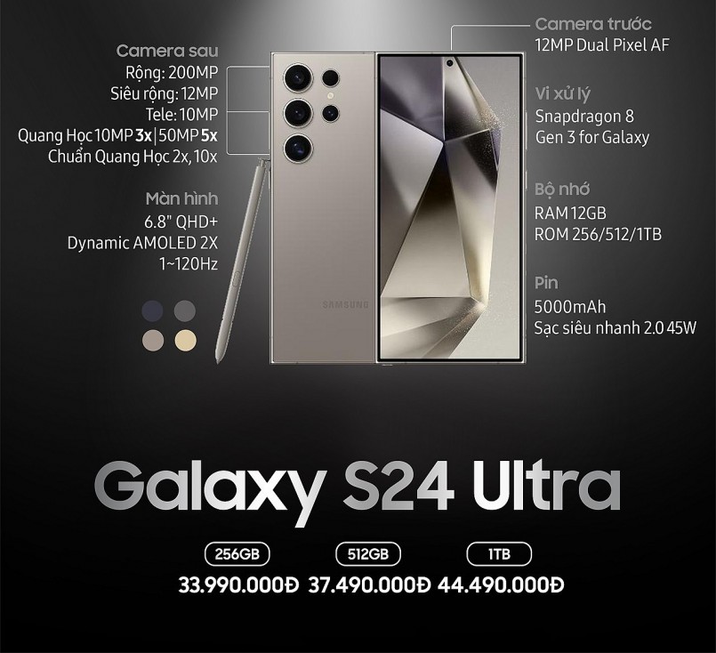 Giá bán niêm yết chính thức của Galaxy S24 Ultra như sau: