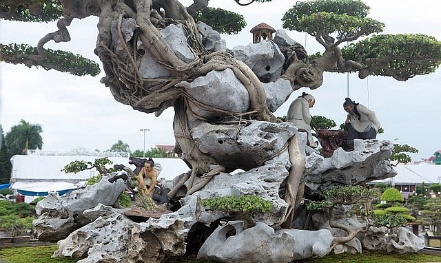 | Đây là tác phẩm sanh cổ thụ kết hợp giữa cây và đá hay còn gọi là “mộc thạch tương sinh” đẹp nhất Việt Nam. |