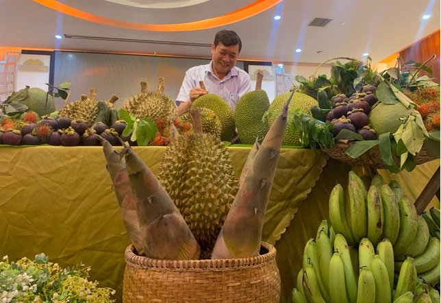 | Trưng bày trái cây Khánh Sơn tại buổi họp báo |