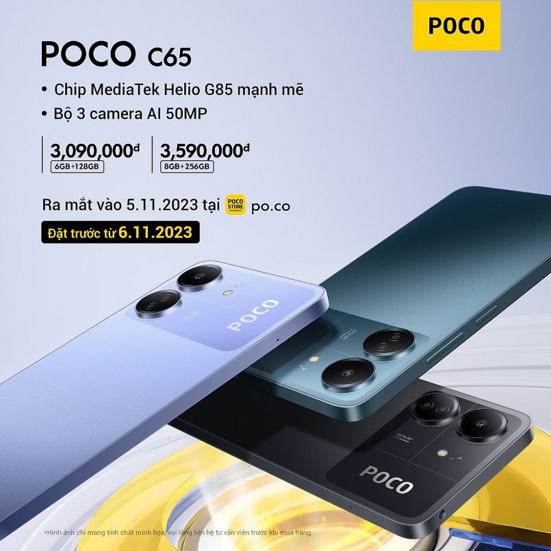 POCO C65 là sản phẩm kế nhiệm của POCO C55. POCO Global đã đăng tải trên mạng xã hội X (Twitter) chia sẻ một poster tiết lộ thiết kế, một vài thông số, giá bán cũng như là ngày ra mắt.