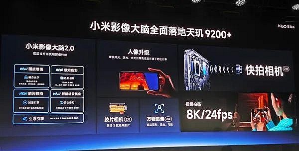 Ngoài việc tập trung vào hiệu năng, Redmi cũng rất chú trọng đến công nghệ hình ảnh. K60 Ultra sẽ được trang bị đầy đủ công nghệ hình ảnh Xiaomi, đánh dấu mức tốt nhất trong ma trận công nghệ hình ảnh của Xiaomi cho đến nay. Xiaomi Imaging Engine mang đến hàng loạt công nghệ và trải nghiệm đổi mới, bao gồm camera chụp nhanh, nâng cấp chân dung, quay video 8K24FPS và theo dõi độ dài tiêu cự đầy đủ.
