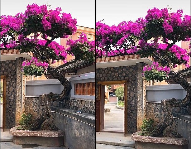 | Cây hoa giấy "khủng" này có màu hồng rực có gốc lớn và thân uốn lượn rất đẹp. |