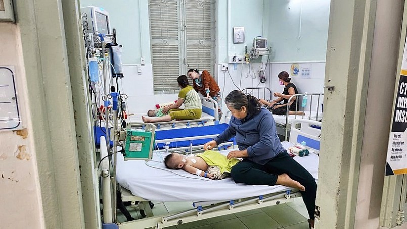 | Trẻ mắc sốt xuất huyết đang điều trị tại Bệnh viện Nhi Đồng 2. |