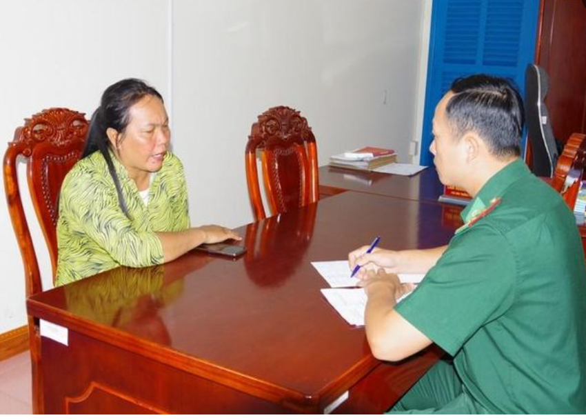 | Đối tượng Trần Thị Thương làm việc với Tổ công tác (Ảnh: Văn Long) |