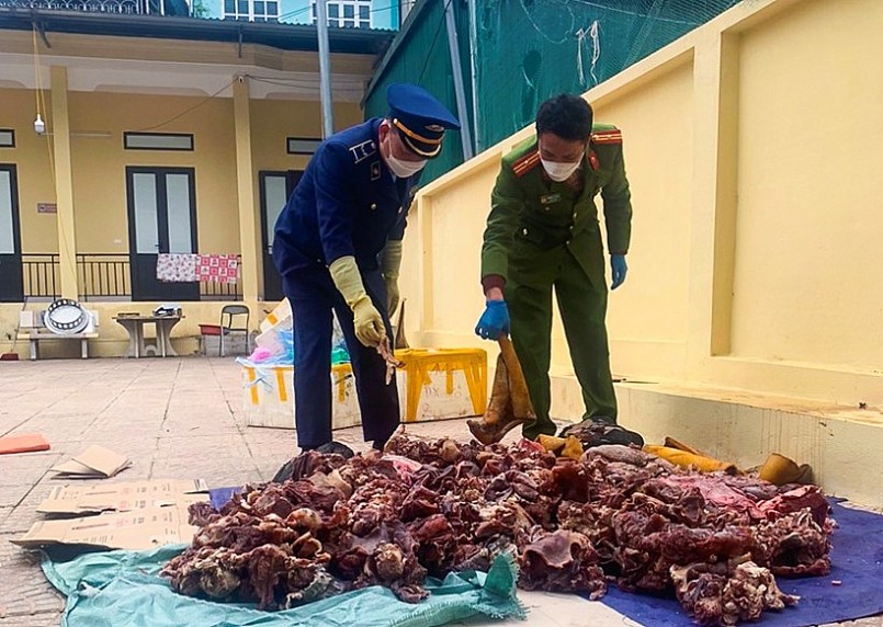Hôm nay (5/1), tại khu vực xã Tông Lạnh, huyện Thuận Châu, tỉnh Sơn La, Phòng Cảnh sát môi trường Công an tỉnh Sơn La phối hợp với các lực lượng chức năng phát hiện một trường hợp đang vận chuyển sản phẩm động vật không rõ nguồn gốc xuất xứ.
