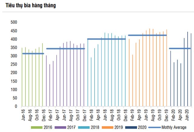 Tỷ trọng tiêu thụ bia chiếm 20,7% trong tiêu thụ FMCG tại Việt Nam trong nửa đầu năm, theo Nielsen, giảm nhẹ so với mức giảm 22% trong năm 2019. Sản lượng sản xuất phục hồi kể từ tháng 5, tăng 60% so với giai đoạn tháng 2 đến tháng 4. Sản lượng lũy kế giảm 17% so với cùng kỳ trong 6 tháng đầu năm 2020, theo Tổng cục thống kê Việt Nam.