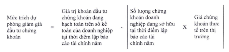 Thông tư nêu rõ, mức trích lập dự phòng giảm giá đầu tư chứng khoán được tính theo công thức sau: