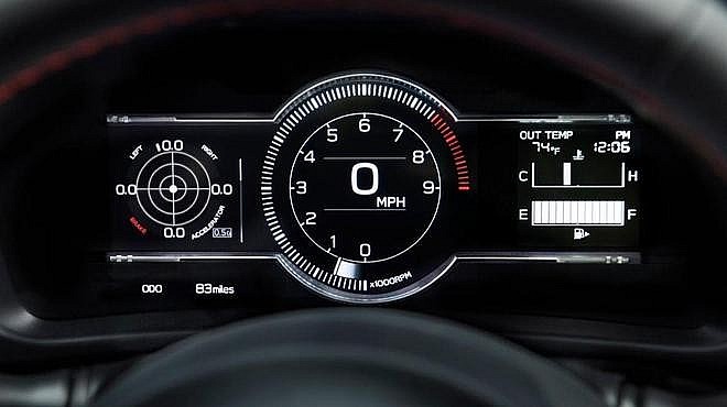Bảng đồng hồ kết hợp LCD 7 inch của SUBARU BRZ thế hệ mới có thể thay đổi tùy theo các chế độ lái khác nhau, ngoài các thông tin cơ bản như tốc độ, tốc độ, mức tiêu thụ nhiên liệu còn có thể hiển thị thông tin giá trị G, đường cong công suất mô-men xoắn và đồng hồ bấm giờ ở chế độ track/VDC OFF , để người lái có thể nắm bắt được trạng thái của xe trong quá trình lái xe căng thẳng và vận hành tốt hơn