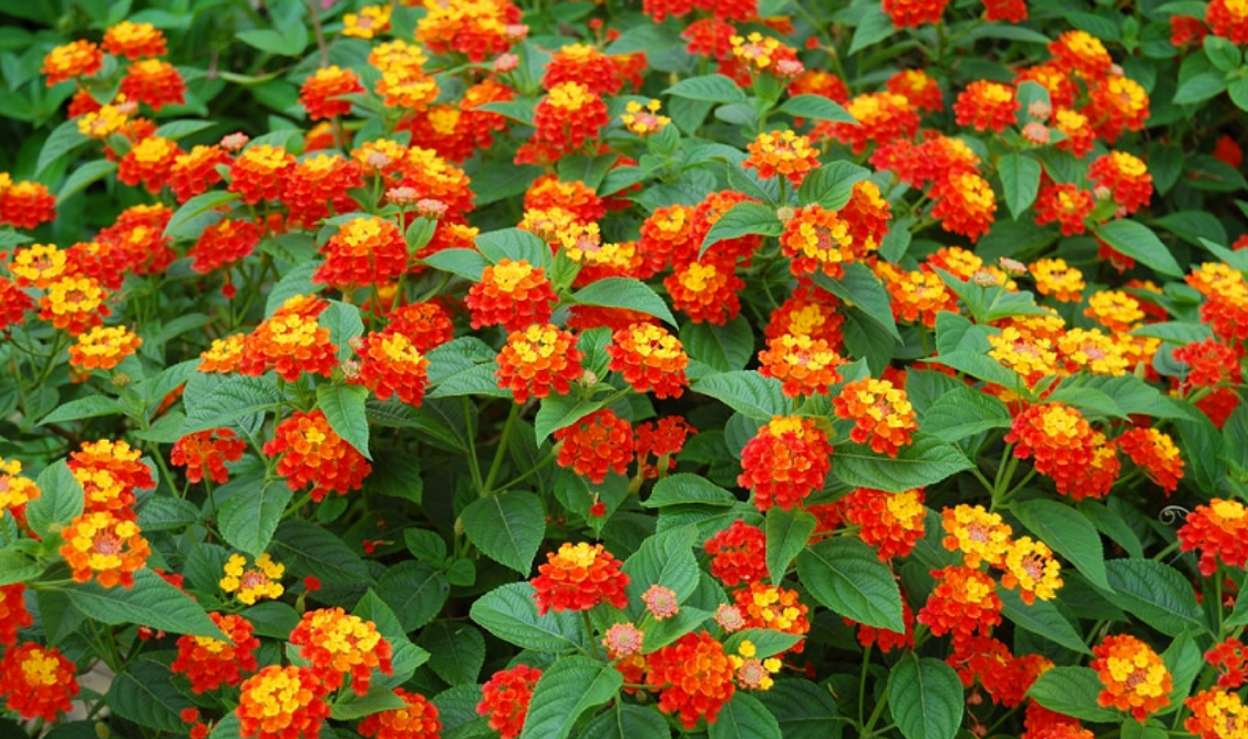 Hoa mọc thành chùm ở đầu cành hoặc đâm ra từ các kẽ lá. Một chùm hoa ngũ sắc thường có nhiều màu gồm nhiều bông nhỏ 4 cánh hình tròn, chính giữa hoa lõm xuống. Đây cũng là lý do dân gian gọi đây là cây ngũ sắc.Vòng đời của mỗi bông hoa sẽ có sự thay đổi màu sắc. Khi mới hé nở, chúng có màu vàng, rồi chuyển thành màu cam, sau đó lại rực rỡ màu đỏ. Tuy nhiên vẫn có loài chỉ đơn sắc: tím, hồng phấn, vàng hay trắng. Đây là loài cây có khả năng nở hoa quanh năm.