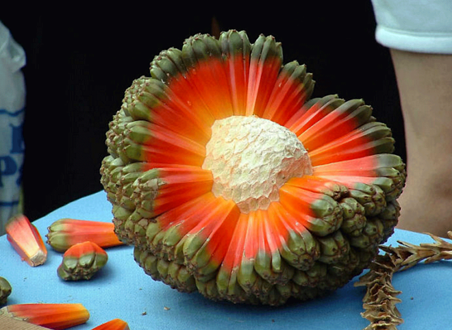 Cây dứa dại còn được gọi với các tên gọi khác như dứa gai, dứa gỗ, dứa rừng. Tên khoa học của cây là Pandanus tectorius Sol., thuộc họ Dứa dại (Pandanaceae).Cây có nhiều rễ phụ, cao chừng 2–4m, phân nhánh ở ngọn. Phần lá có gai nhọn ở gân và hai bên mép. Hoa của nó rất thơm. Quả có dạng hình quả trứng dài khoảng 16–22cm.
